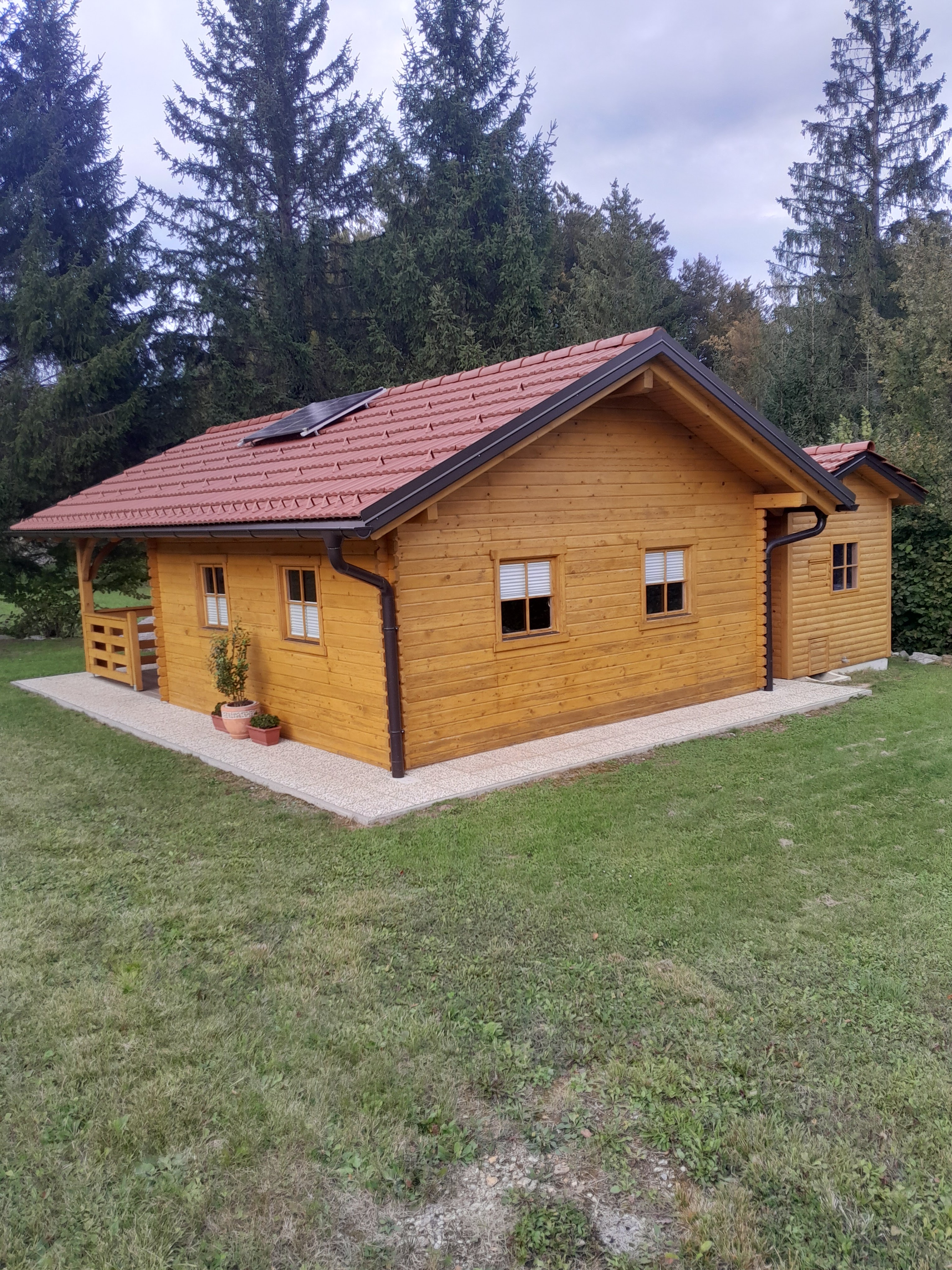 Vikend/počitniška hiška – Sodražica Domov Referenčni izdelki Vikend/počitniška hiška - Sodražica velikost 500 x 800 cm Debelina sten 42 mm